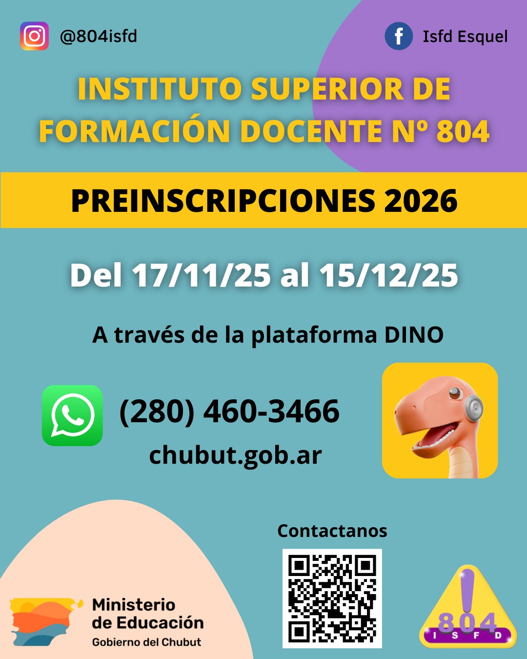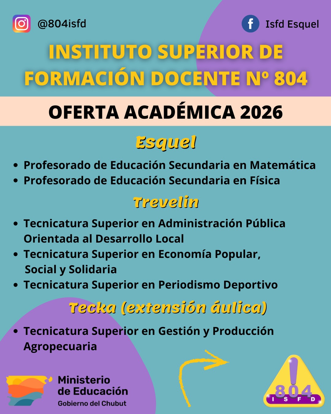 El Instituto Superior de Formación Docente N° 804 te invita a formar parte de su comunidad educativa